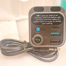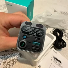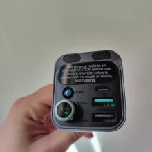 It works really well and the audio quality is top-notch, super easy to use too. It also supports 25W Super Fast Charge on my Samsung phone with the USB-C port, which was a nice surprise. Just a heads up, if you hear weird whining noises that change with engine RPM, it's not the device's fault but electrical interference with the car's 12V system. Some cars have this issue. To fix it, you can power the device with a power bank that has a 12V outlet, or if you're into electronics, use two 9-volt batteries in series with alligator clips. This gadget can handle up to 24 volts perfectly. Just don't charge your phone with it when using the 9V batteries setup. This way, you can get rid of any interference noise and enjoy amazing audio quality.