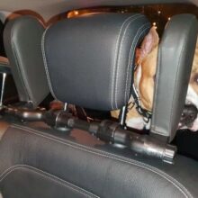 Step 1 – Choose from one of our two provided pairs of rubber holders to find your headrest pole’s best fit (you get 10-mm and 12-mm-size holders).