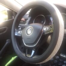 I love all that sparkles. Apart of me wishes that it was sparkly all the way around. But it’s pretty. I’ve had this steering wheel cover for about two weeks. It looks great, and it fits my Ford Escape perfectly. It was difficult to get it on, but I would except it to be. I’d definitely recommend it.